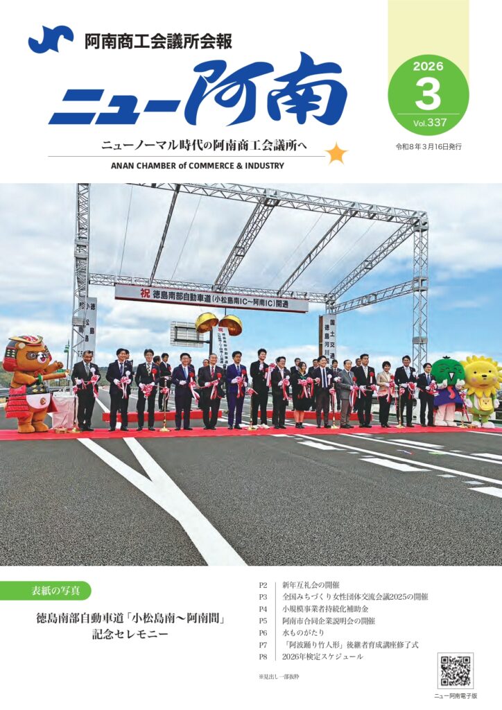 2026年3月17日 / 最終更新日時 : 2026年3月17日 anancci お知らせ 会報「ニュー阿南3月号」発行 阿南商工会議所会報「ニュー阿南3月号(vol.337)」が発行されました。 電子版はこちら FacebookXBlueskyHatenaCopy